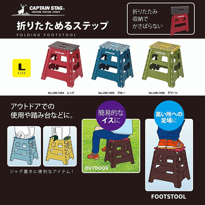 \本日ポイント3倍/折りたためる ステップ Lサイズ 高さ 39cm 踏み台 足場 UW-1504 UW-1506 足置き 軽量 小さい キッズ 簡易 椅子 コンパクト ソロ 子供 女性 キャプテンスタッグ