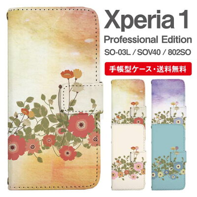 スマホケース 手帳型 Xperia 1 スマホ カバー SO-03L SOV40 802SO Xperia1 Professional Edition エクスペリア おしゃれ エクスペリアケース Xperia 1ケース 花柄 フラワー ポピー