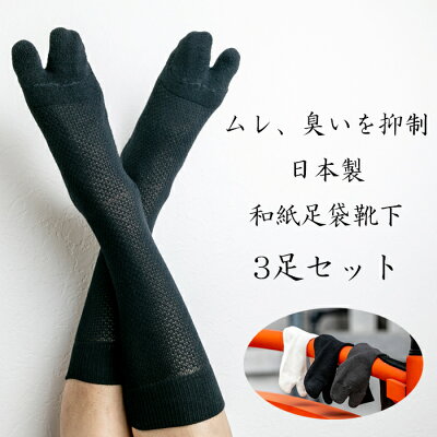 3足組 セット 和紙ロング足袋靴下 送料無料 日本製 消臭 蒸れない 抗菌防臭 通気性 パイル地 クッション性 足の負担を緩和 姿勢 歩行 冠婚葬祭 ドライタッチ ビジネス カジュアル 吸汗速乾 履きやすい 履き心地 フォーマル ソックス 黒 白 グレー メンズ フリー ユニセックス お得な3足セット!正しい姿勢や歩行等をサポート!足への負担を緩和、ムレ、臭いを抑える和紙足袋靴下。