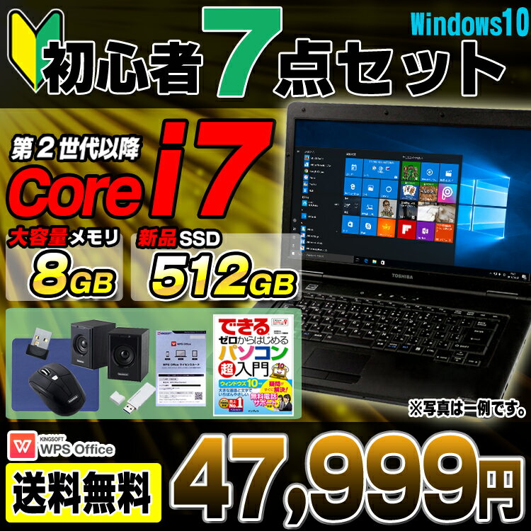 初心者PC入門セット 中古パソコン 中古ノートパソコン Windows10 Corei7 メモリ8GB 新品SSD512GB おまかせノートPC 15.6型ワイド ノートパソコン DVD 無線LAN Kingsoft WPS Office付き 【中古】 |パソコン pc 中古pc ノート ノートpc ウィンドウズ10 ウインドウズ10 オフィス