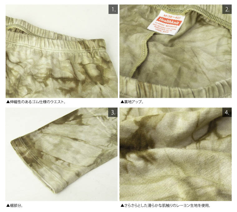 アイテムタイダイ柄レギンス ブランドHealthKnit STAFF COMMENT 高品質なアンダーウエアでは全世界で定評のある【Healthknit】(ヘルスニット)製。