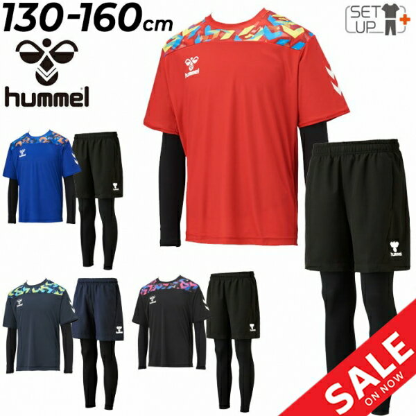 送料無料 ヒュンメル キッズウェア 4点セット 子供服 130-160cm/hummel プリアモーレ ジュニア 半袖シャツ ハーフパンツ 長袖インナーシャツ ロングタイツ 上下組 スポーツウェア サッカー トレーニング 練習着 子ども セットアップ/HJP7130-HJP7130P