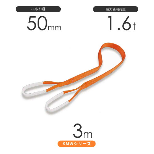 仕様 ベルトタイプ:KMWシリーズ(1色)ナイロンスリング 形状:両端アイ形(E型) アイ寸法:360mm ロープ:幅50mm×長さ:3m 最大使用荷重:1.6t 規格:JIS規格3等級 日本製 使用温度:100℃以下 ※商品の使用荷重・寸法詳細などは画像を参考にして下さい。