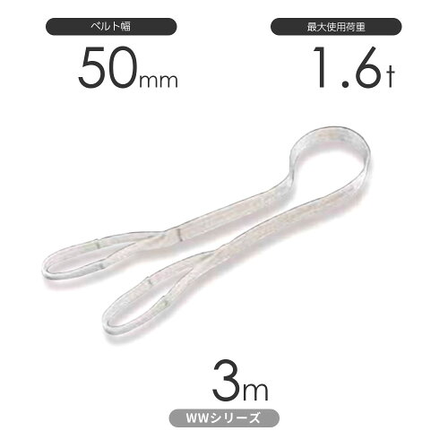 お気軽にお問い合わせくださいませ!国産ナイロンスリング WWシリーズ(未染色) 両端アイ形(E型)幅50mm×3m 使用荷重:1.6t 丸善織物