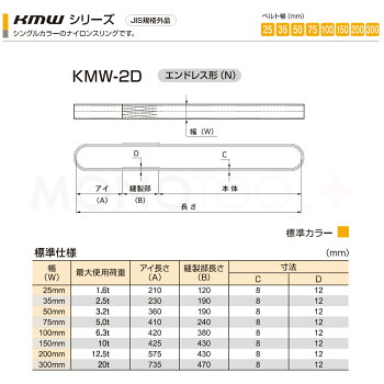 お気軽にお問い合わせくださいませ!国産ナイロンスリング KMWシリーズ(1色) エンドレス形(N型)幅50mm×3m 使用荷重:3.2t 丸善織物