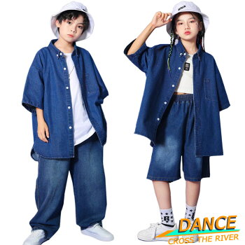 キッズ ダンス衣装 デニム パンツ 半袖シャツ 白 タンクトップ デニムパンツ ヒップホップ 子供 ロング ハーフ ズボン k-pop 演出服 男の子 女の子 社交ダンス カッコイイ 長ズボン 練習服 ゆったり HIPHOP 応援団 団体注文可 発表会 ステージ衣装 110-180cm 単品