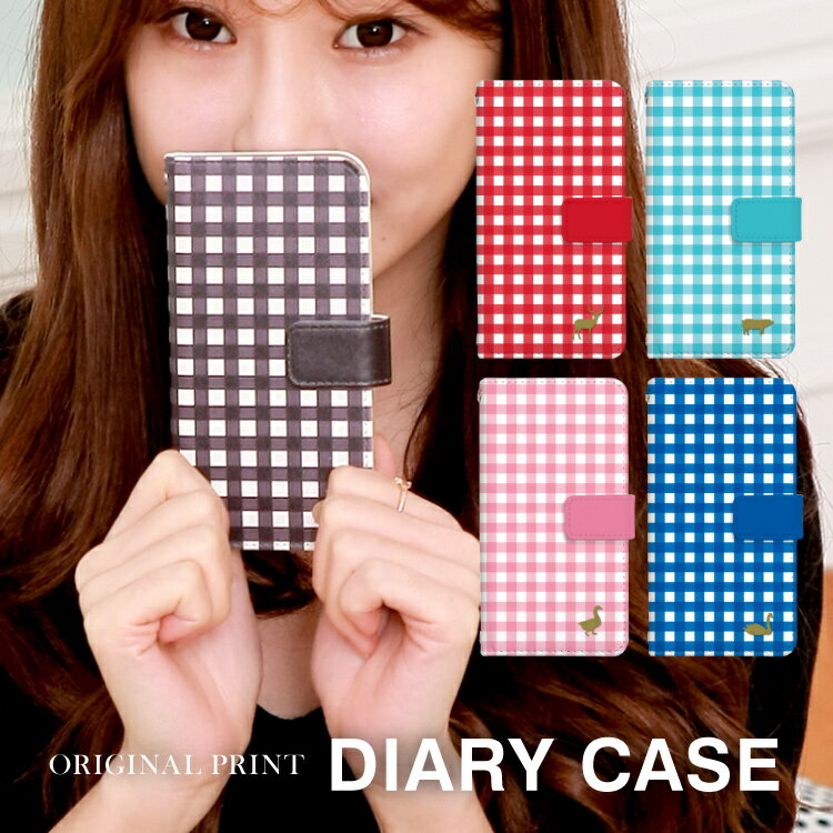 商品詳細 手帳型レザースマホカバー 歴史ある根強い人気のギンガムチェック柄を全面にプリントしたスマホケースです。
